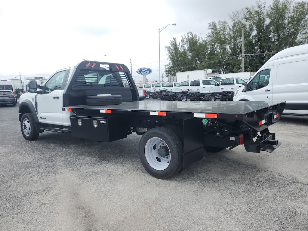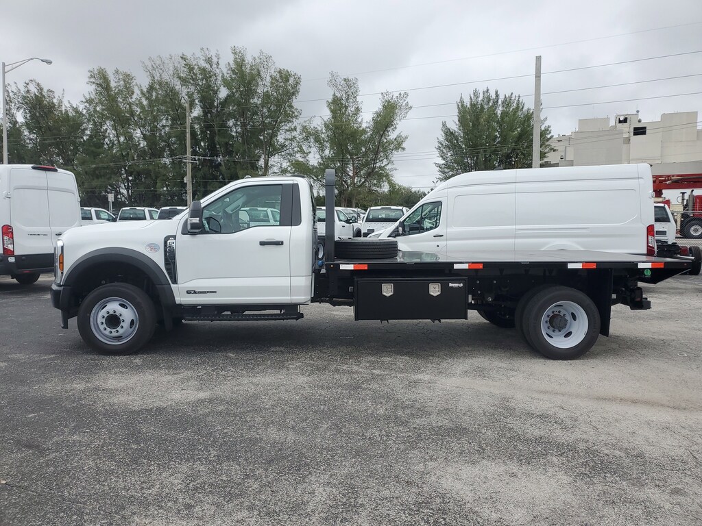 Our excellent 2024 Ford F-550 DRW XLT 12" Flat Deck Truck is for sale at Palmetto Ford of Miami, 7245 NW 36th St, Miami, FL. 33166. It has a sleek Oxford White exterior, a Medium Dark Slate interior, a powerful 6.7L Power Stroke V8 Diesel Engine, and a 19-speed torqshift automatic transmission.